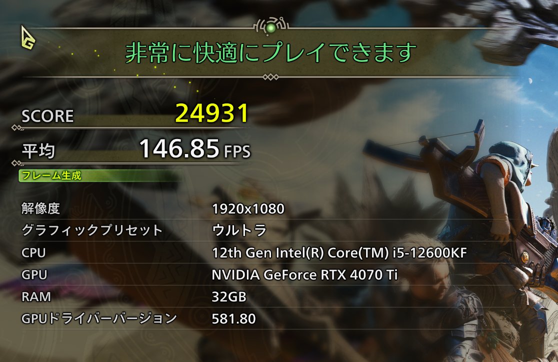 最近のベンチは別スレにしてぼちぼち貼っていきます。モンハン 4K ウルトラ設定 フレーム生成無し。