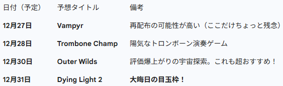 Geminiがどこからか拾ってきた予想リストはこんな感じみたいもし当たってたら30日と31日は嬉しい