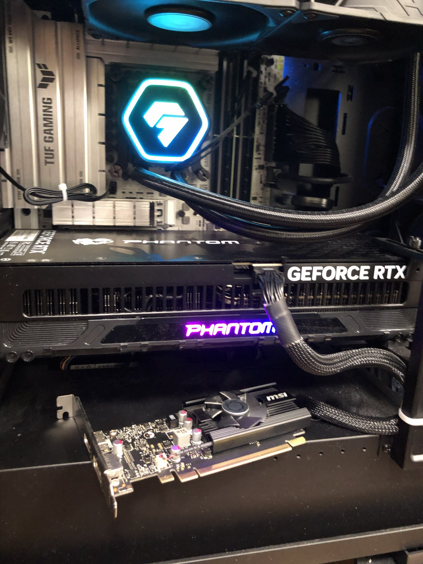 新規で1台組もうと思っていましたが、ジサッカーの掟を破りBTO^^;5090はGainward製でした。ウワサ通りデカイ!PCIEの最下段はPhysX用にGT1030挿してます。