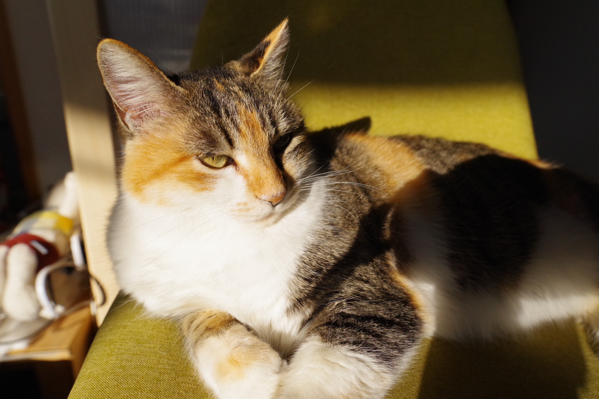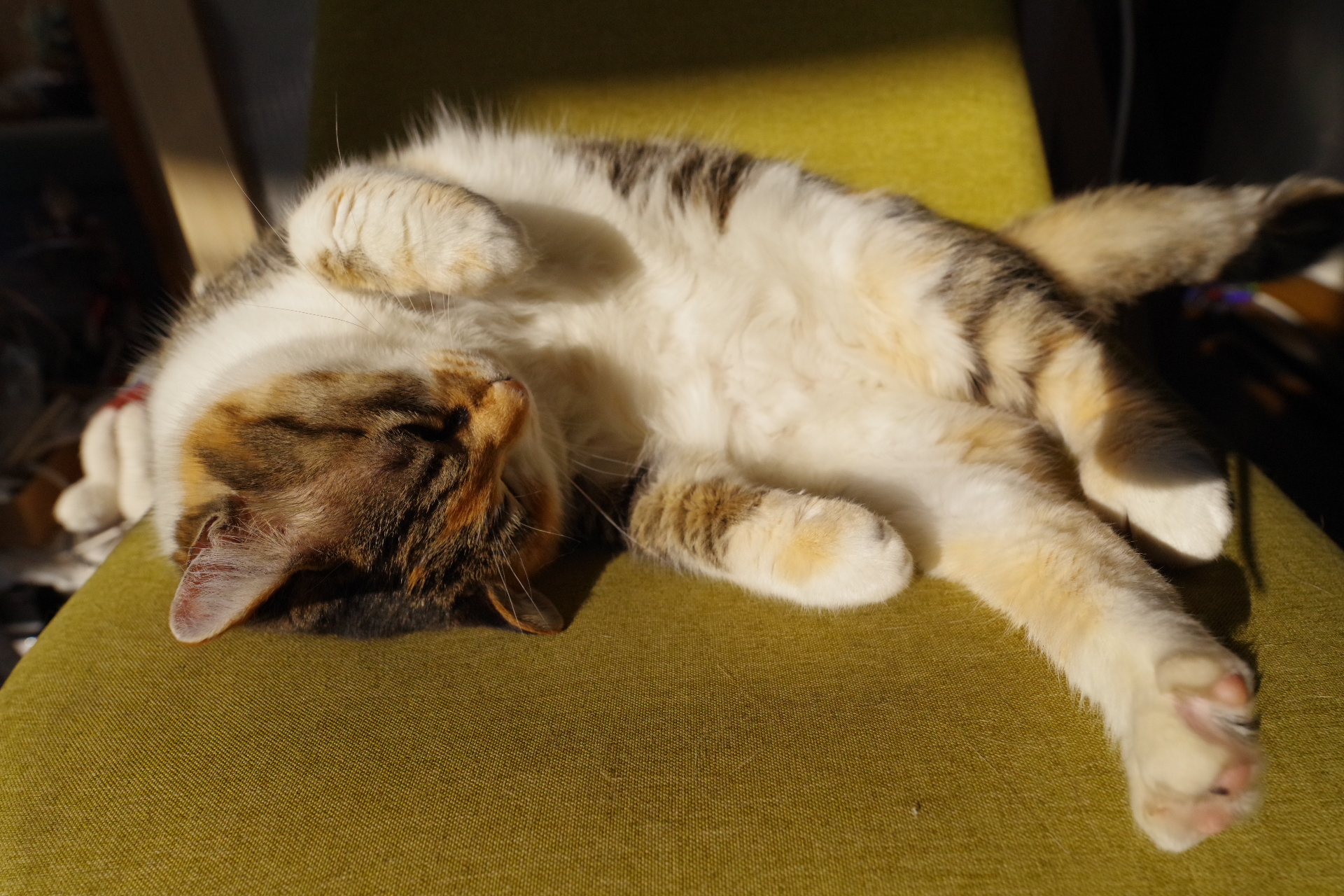 「にゃー」朝起こしに来ます。ごはん催促して食べたらブラシかけを要求しまた寝ます。